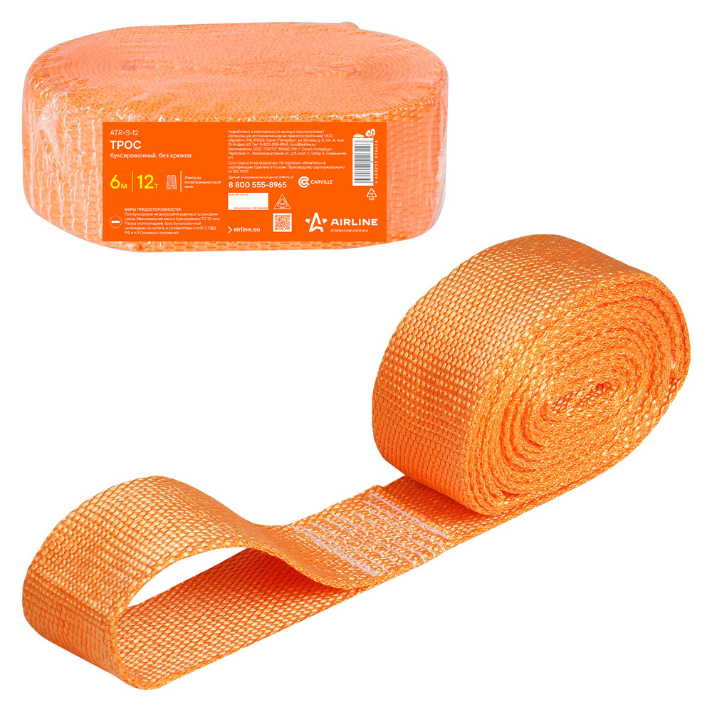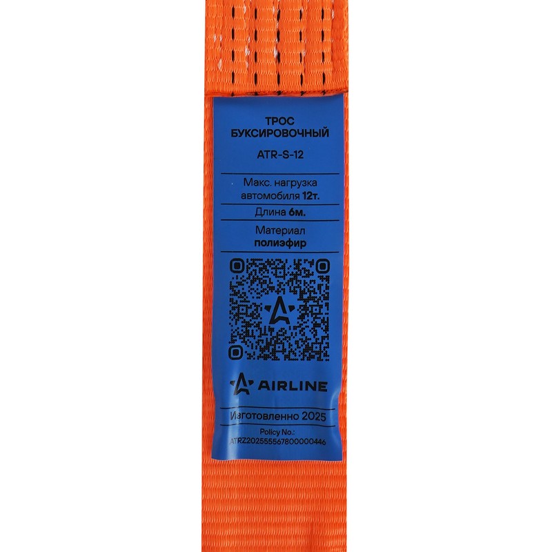Трос буксировочный (лента) 12 т, 6 м, без крюков (ATR-S-12)