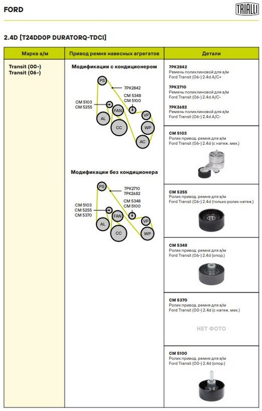 Сопутствующий товар: Ролики приводного ремня: CM 5103, CM 5348, CM 5370, CM 5100
