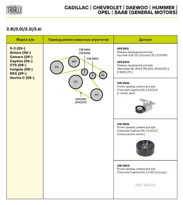 Ролик привод. ремня для а/м Chevrolet Captiva (06-) 3.0i/3.2i (только ролик натяж.) (CM 5846)
