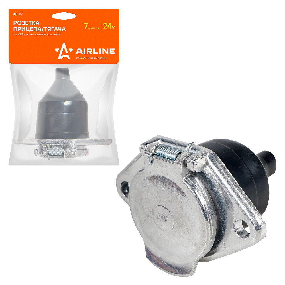 Розетка прицепа/тягача 24В тип-N 7 контактов металл (сальник) (ATE-32)