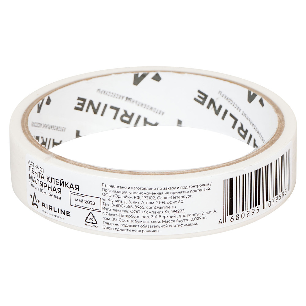 Лента клейкая малярная (скотч), 19 мм*10 м, белая (AAT-P-01)