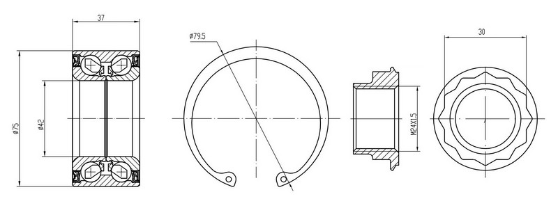 Подшипник ступицы для а/м BMW 3 E90 (05-)/1 E81 (04-) 75мм задн. (кмпл:подш./стоп.кол./гайка) (CS 2670)