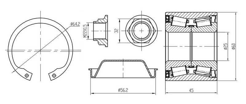 Подшипник ступицы для а/м Peugeot 307 (00-) задн. (кмпл:подш.60*45/крыш./гайка/стоп.кол.) (CS 2081)