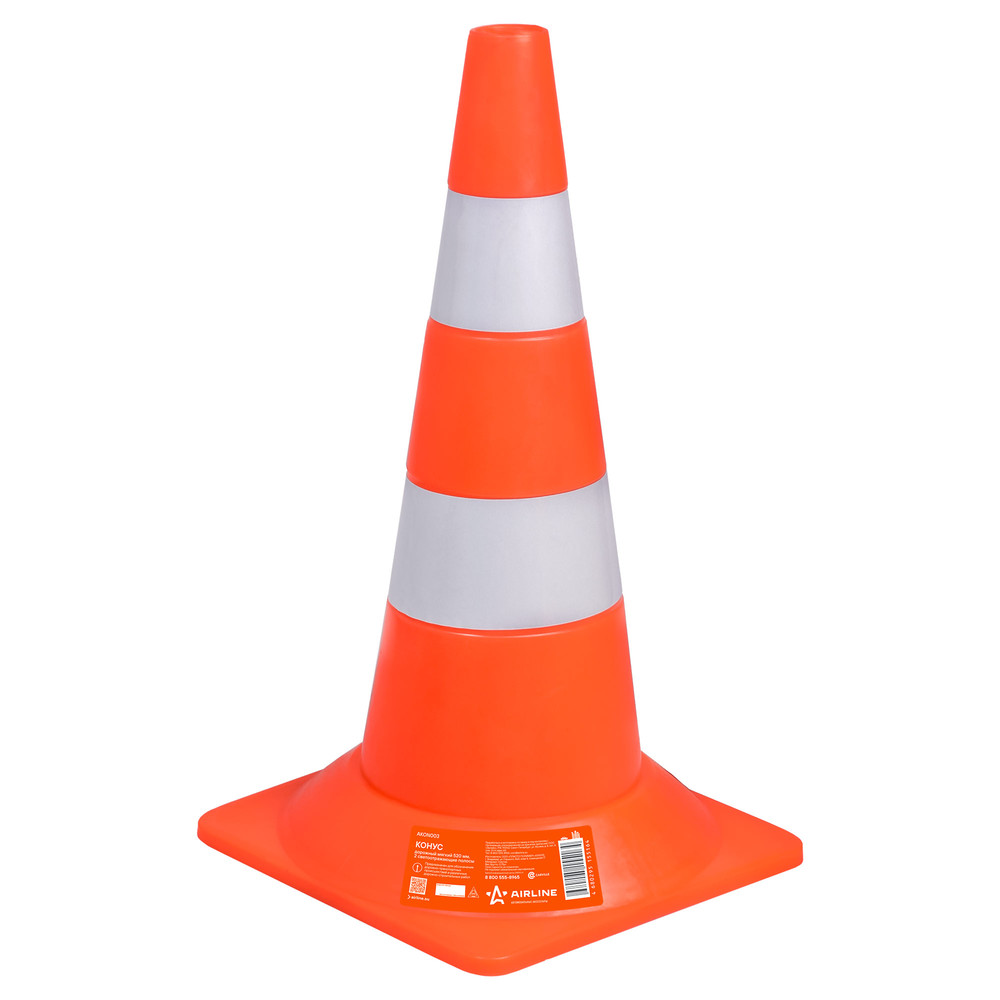 Конус дорожный мягкий 520мм, 2 световозвращающие полосы (AKON003)