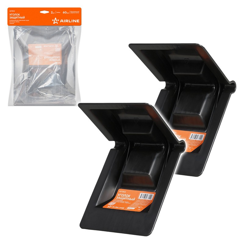 Уголок защитный усиленный для крепления груза лентой до 60мм, черный, набор 2 шт. (ASTB02)
