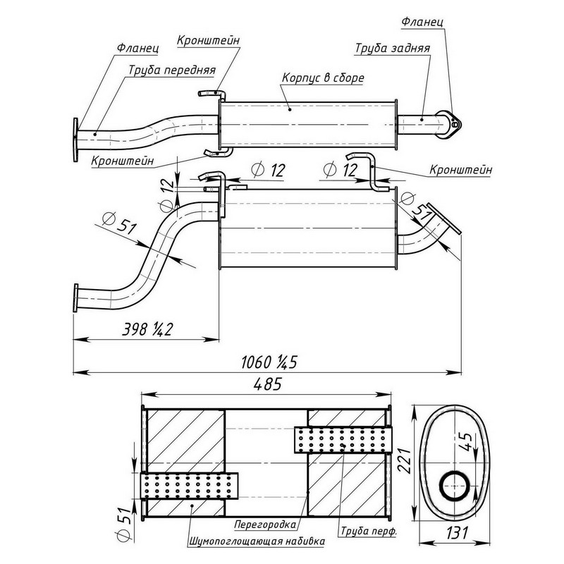 Глушитель для а/м Hyundai Porter (93-) осн. (алюм. сталь) (EMM 0805)