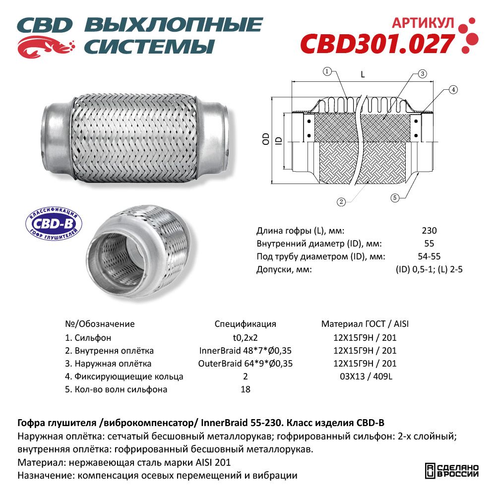 Гофра глушителя 3-сл Innerbraid 55-230. CBD301.027