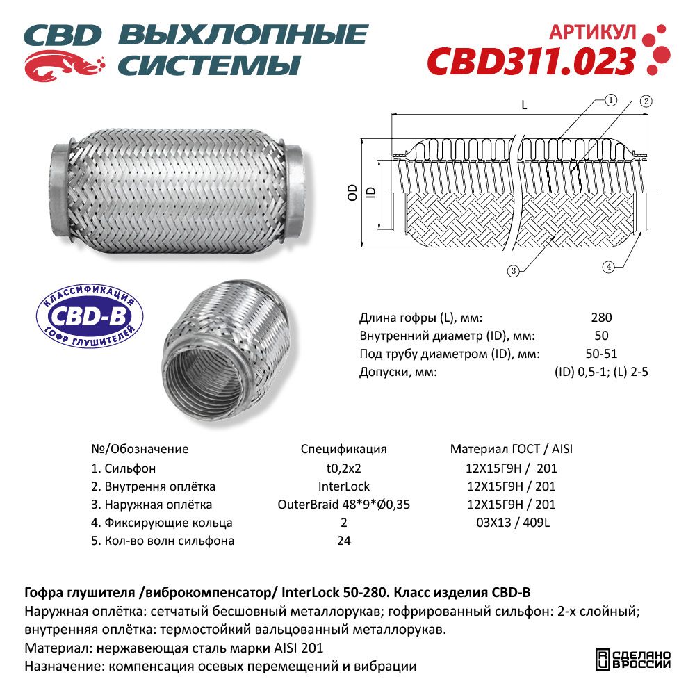 Гофра глушителя 3х-сл InterLDck 50-280. CBD311.023