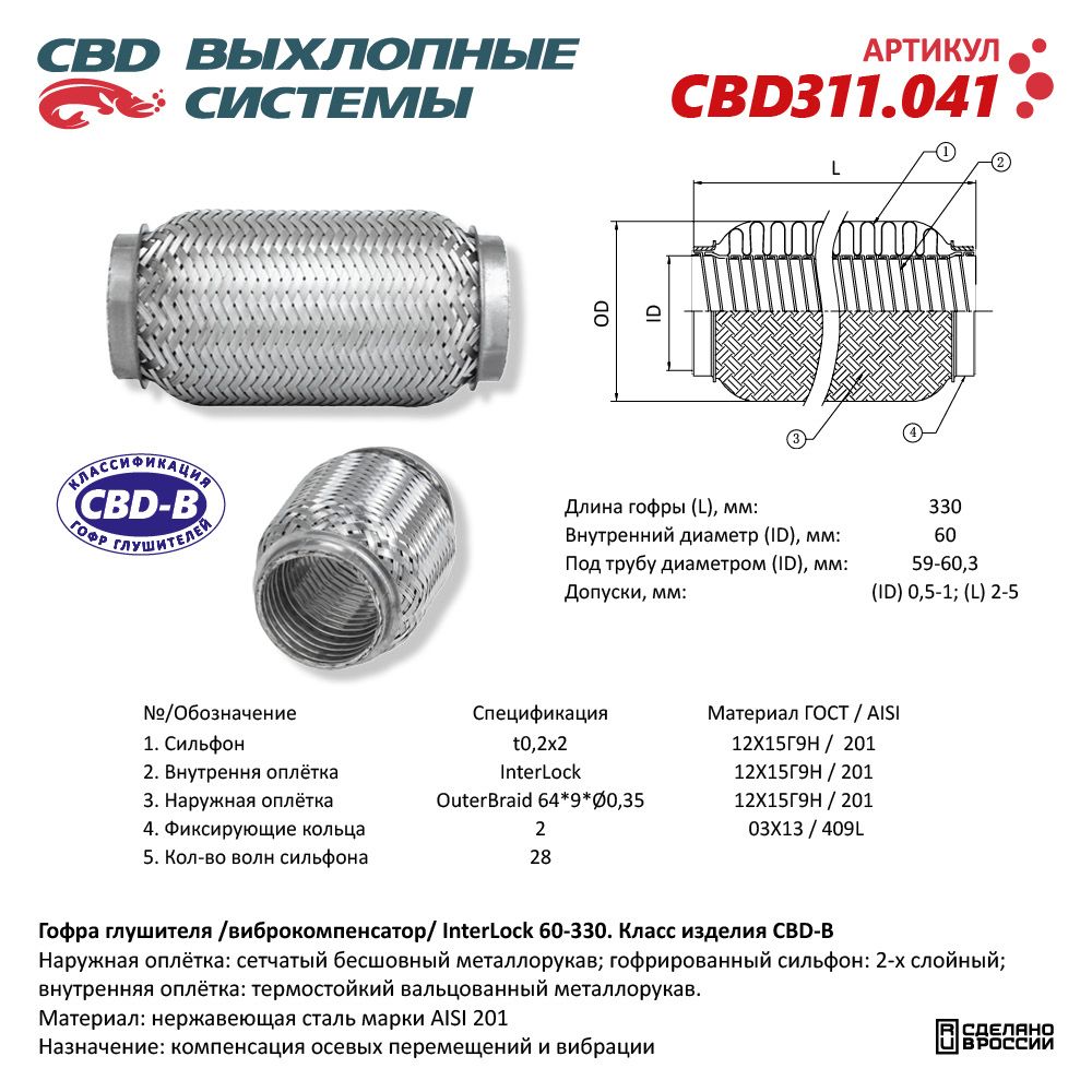 Гофра глушителя 3х-сл InterLDck 60-330. CBD311.041
