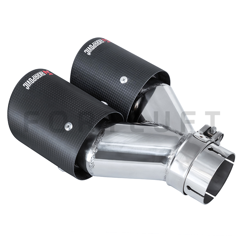 Насадка на глушитель левая двойная со скосом и хомутом.