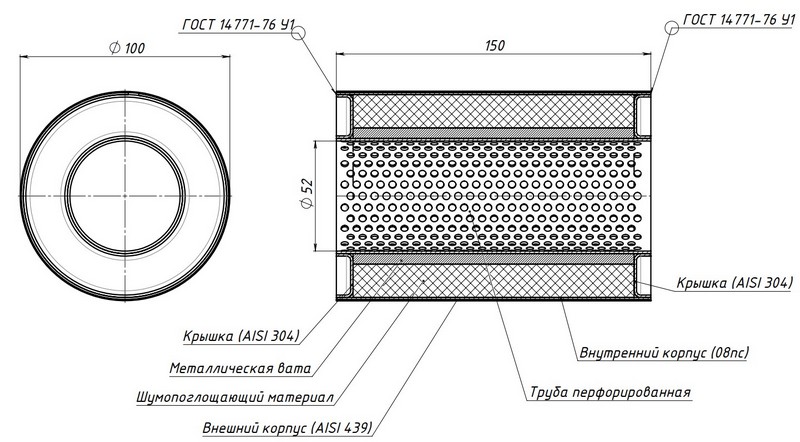 Особенности конструкции: Труба перфорированная и шумопоглощающий материал