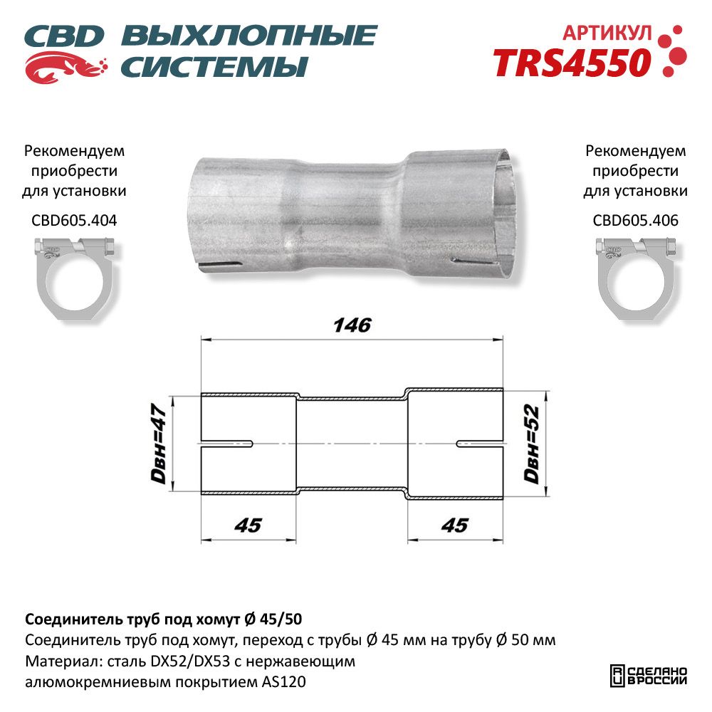 Соединитель труб под хомут. TRS4550